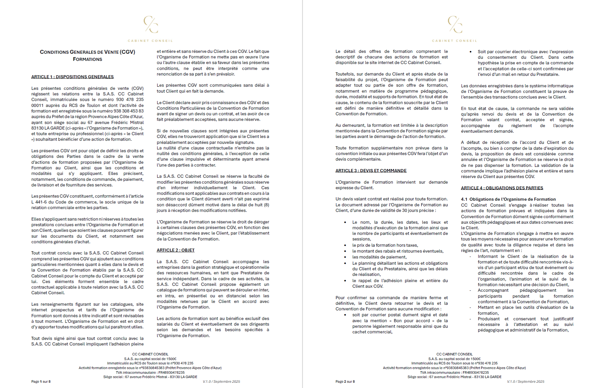 En vous inscrivant à la newsletter, vous consentez à ce que CC Cabinet Conseil en sa qualité de responsable de traitement, collecte vos données afin de vous envoyer des communications par voie électronique. Vous pourrez vous désabonner à tout moment. Pour faire valoir votre droit d’accès, de rectification ou d’effacement, consultez notre politique de confidentialité.